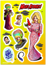 Ack Ack! Here's a 5x7 sticker sheet featuring the characters from the popular (at least to me) movie, Mars Attacks!